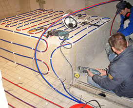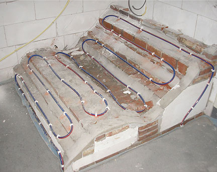 Hier links een voorbeeld; Dit is een blok verwarming voor een sauna. Dit blok wordt aangesmeerd en betegeld waarna